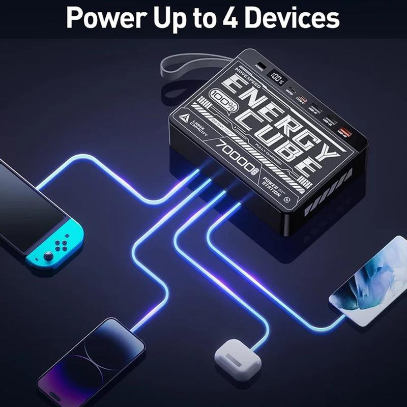 Movespeed YSPBZ70-22K -virtapankki on erittäin tehokas 70000mAh:n kannettava laturi, joka on suunniteltu äärimmäiseen kestävyyteen ja nopeuteen. Siinä on useita pikalatausportteja ja rohkea mecha-vaikutteinen muotoilu, ja se on suunniteltu pitämään laitteesi virtalähteenä päivien ajan - olitpa sitten retkeilemässä, matkoilla tai etätyössä.