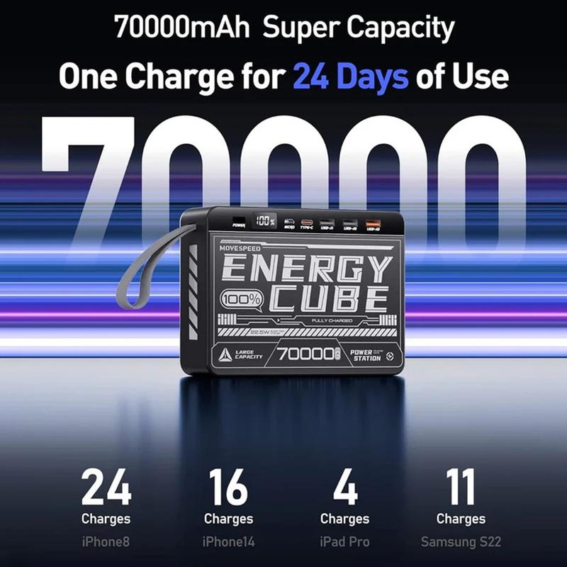 Movespeed Z70 70000mAh Powerbank - 22.5W nopea lataus kannettava laturi 5 portilla