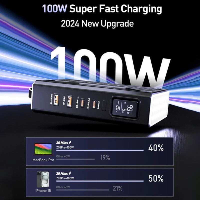 MOVESPEED YSPBZ70Pro-100 tarjoaa kannettavan tietokoneen lataustehoa ja poikkeuksellista kapasiteettia kannettavassa muodossa. Edistyksellisen pikalatausteknologian, älykkään virranhallinnan ja LCD-näytön ansiosta se on äärimmäinen all-in-one-virtaratkaisu vaativille käyttäjille.