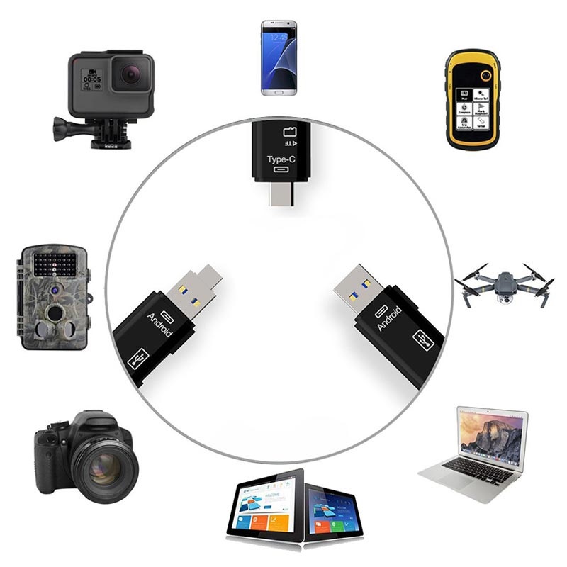 Multifunctional 3-in-1 High-Speed OTG USB 3.0 Adapter & MicroSD Card Reader - USB-C, Micro USB, USB 2.0