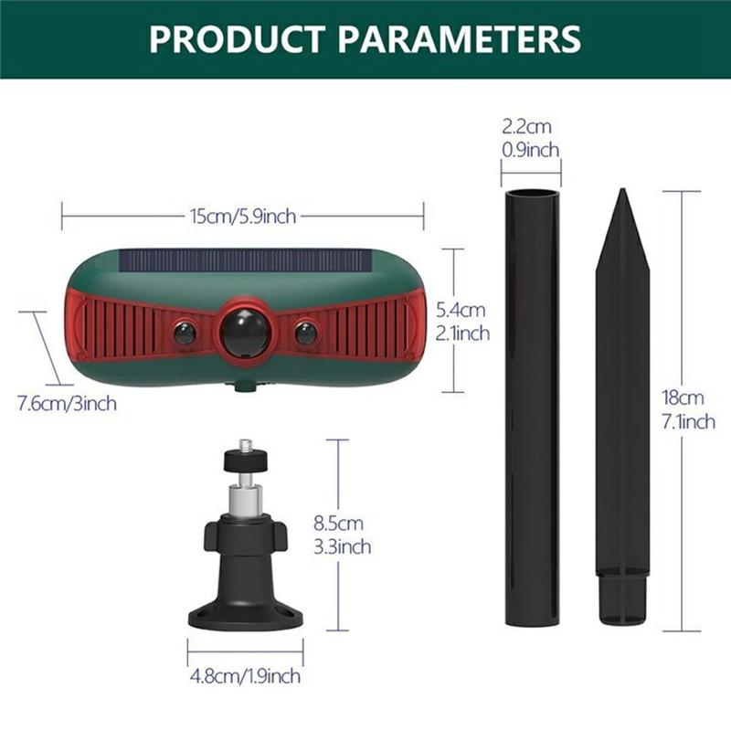 N911Y Aurinkoenergialla toimiva infrapuna-liiketunnistinhälytin on suunniteltu pelottamaan ei-toivottuja eläimiä ja parantamaan omaisuuden turvallisuutta. Se soveltuu maatiloille, hedelmätarhoihin, puutarhoihin, lampiin, vajoihin ja varastoihin, ja se käyttää liikeaktivoituja ääni- ja valovaroituksia, joita tuetaan aurinkolatauksella ja jotka takaavat pitkäaikaisen ja ympäristöystävällisen toiminnan.