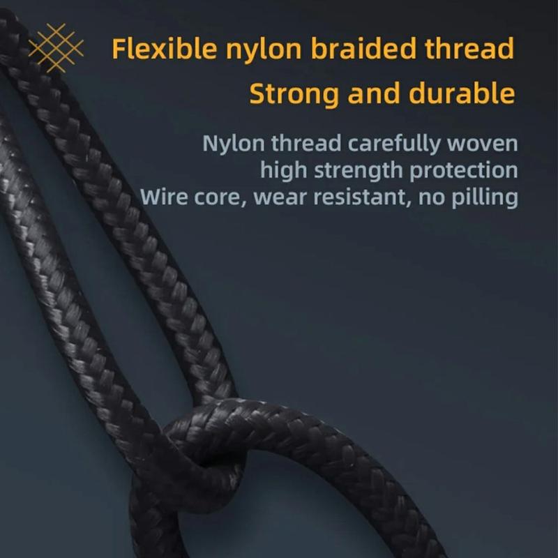- Kestävä nylonpunottu kaapeli parantaa kulutuskestävyyttä ja vähentää sotkeutumista