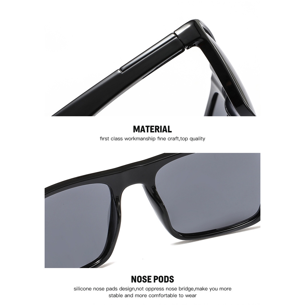 Näissä aurinkolaseissa yhdistyvät moderni tyyli ja käytännöllinen suorituskyky. Polarisoidut TAC-linssit ja kestävä PC-kehys takaavat kirkkaan näkyvyyden ja luotettavan suojan, joten ne ovat täydellinen kumppani kaupungin kaduilta vuoristopolkuihin.