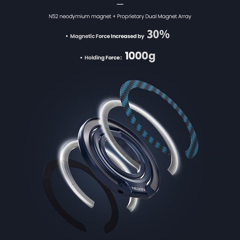 Nillkin FiberSnap Magneettinen rengasjalusta - Aramidikuitu- ja alumiinikahva portaattomalla kulmasäädöllä varustettuna.