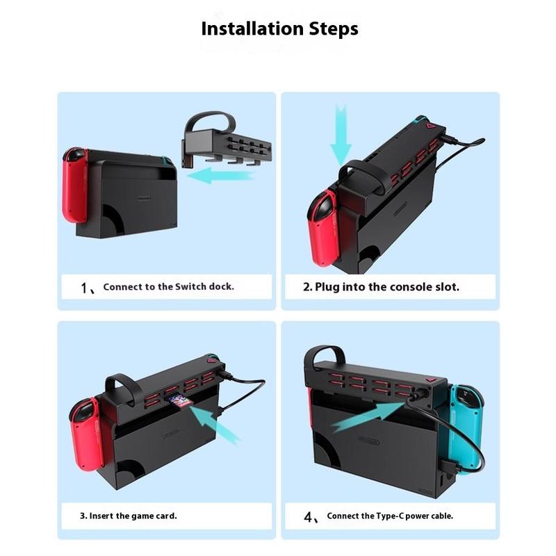 NS02 Pelikortinlukija ja -kytkin Nintendo Switchille/Switch OLEDille - 8-paikkainen tallennuskeskus langattomalla kaukosäätimellä varustettuna