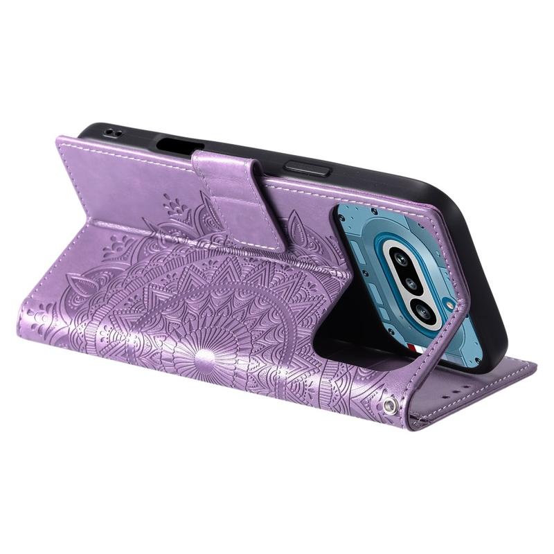 Suojaa puhelimesi tyylikkäästi tällä Nothing Phone (4a) -lompakkotelinekotelolla. Koristeellisella mandala-kuviolla varustettu käytännöllinen läppäkotelo yhdistää päivittäisen suojan, korttipaikat ja kädet vapaana -katselun yhteen kätevään kokonaisuuteen.