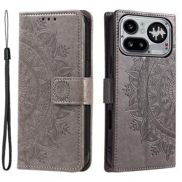 Nothing Phone (4a) Pro Mandala -lompakkokotelo rannehihnalla - kääntökansi, jossa korttipaikat ja TPU-sisäkuori