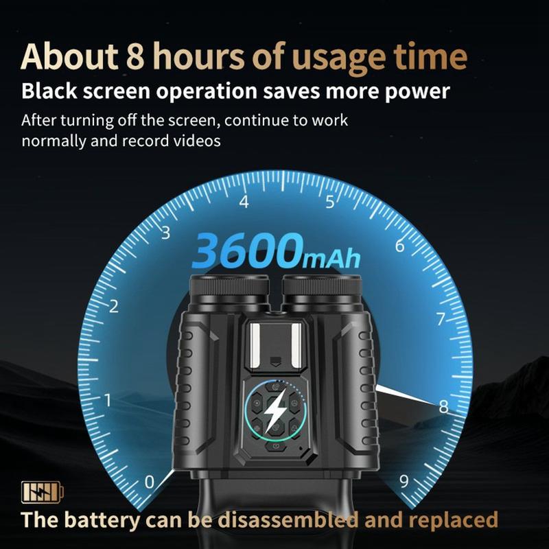 - Pidennetty akun käyttöikä: 3600 mAh:n irrotettava akku tukee noin 8 tunnin yhtäjaksoista käyttöä, mikä on ihanteellinen pidemmille metsästys- tai retkeilyreissuille.