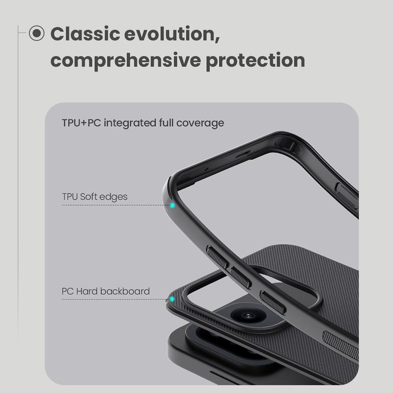 Nillkin on suunnitellut Super Frosted Shield -suojakotelon uuden sukupolven Applen puhelimille, kuten OnePlus 15:lle. Se tarjoaa erinomaisen pudotussuoja kaksikerroksisen suunnittelunsa ansiosta - PC-takana TPU-kehys.