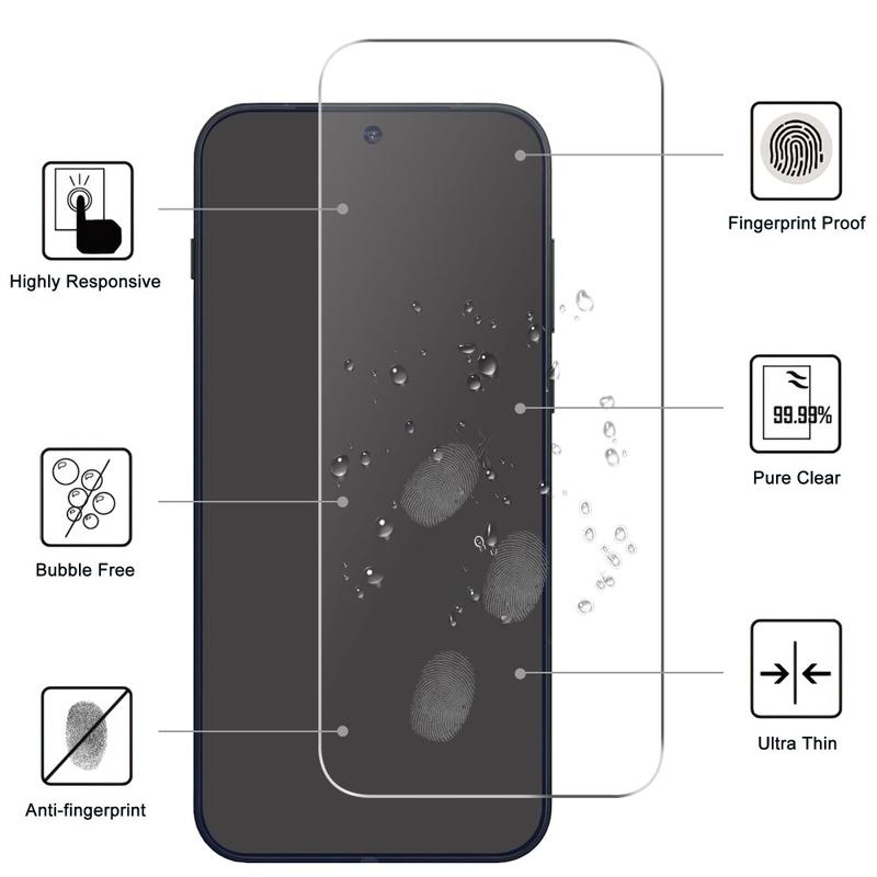 - Kuplaton asennus: Kohdista ja kiinnitä suojakalvo vaivattomasti näyttöön ilman, että joudut pelkäämään ilmaa tai rumia kuplia.