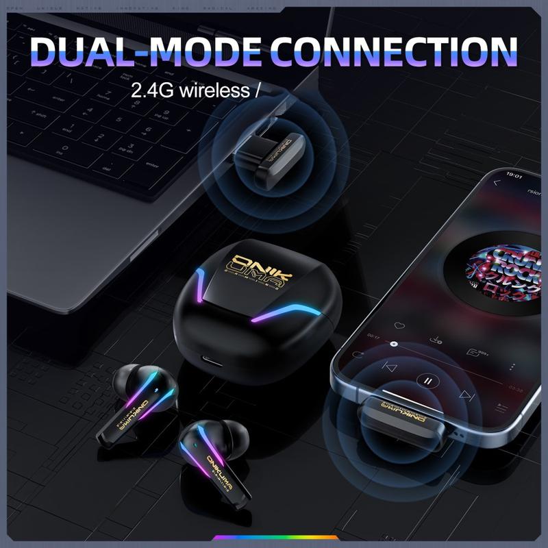 Paranna pelaamista ja päivittäistä kuuntelukokemustasi ONIKUMA T27 -langattomilla kuulokkeilla. Ne on suunniteltu pelaajille, jotka haluavat nopeamman vasteen ja joustavan yhteyden. Ne tukevat sekä 2,4 G:n langatonta yhteyttä että Bluetooth 5.3:a, joten saat viiveettömän yhteyden pelaamiseen ja kätevän langattoman vaihtoehdon musiikin kuunteluun, puheluihin ja päivittäiseen käyttöön. Ergonominen muoto on suunniteltu pidempiin käyttöjaksoihin, joten kuulokkeet pysyvät mukavasti korvissa, pelatessasi kotona, matkustaessasi tai treenatessasi.