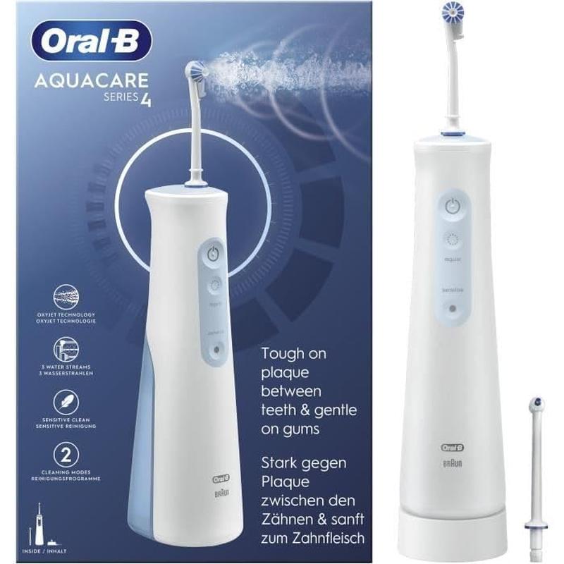 Oral-B AquaCare 4 -akkukäyttöinen suunhuuhtelulaite - Oxyjet-vesihammaslanka, jossa on 2 tehoasetusta ja 2 suihkutilan vaihtoehtoa