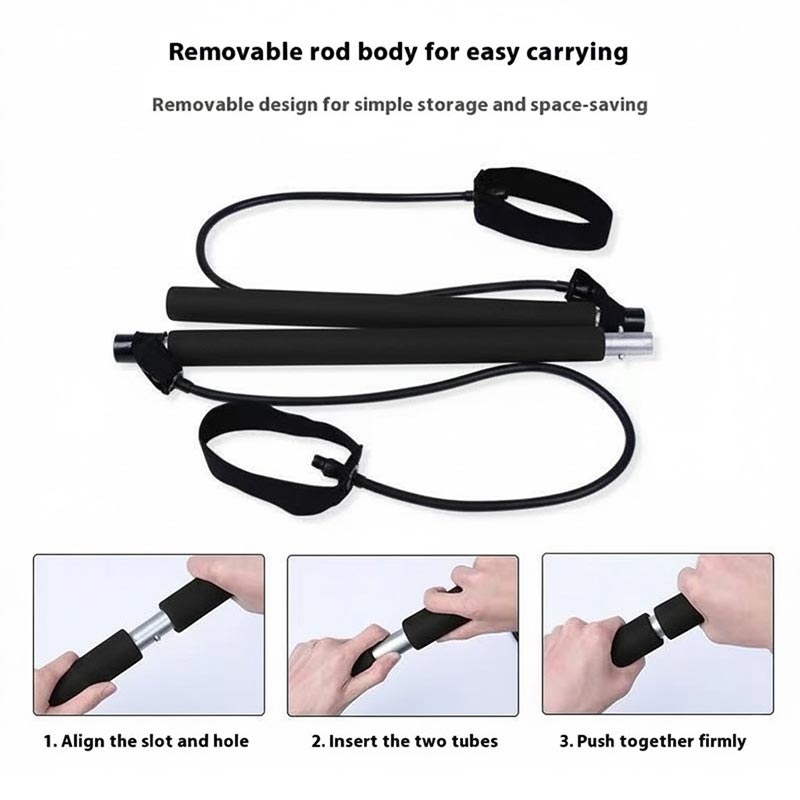 Pilates-tanko vastuskuminauhoilla - Irrotettava voimaharjoittelu- ja venyttelytanko, 91cm, liukumaton NBR-kädensija, pyörivät koukut