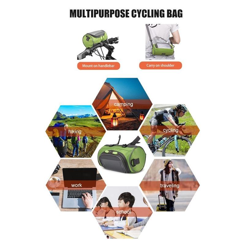 Polkupyörän etusäilytyslaukkua voidaan käyttää myös päivittäisenä rentona crossbody-laukkuna mukana tulevalla olkahihnalla, monipuolinen ja muodikas, täydellinen kouluun, työhön, vaellukseen, kiipeilyyn, pyöräilyyn, retkeilyyn, matkustamiseen jne.