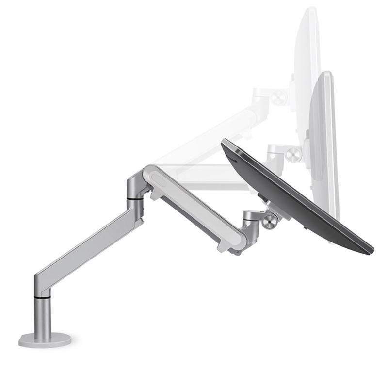 Kiinnikkeessä on 360 asteen näytön kierto ja monisuuntainen kääntötoiminto, mikä mahdollistaa katselukulmien tarkan säätämisen. Voit helposti kallistaa, kääntää ja asettaa kannettavan tietokoneen tai näytön uuteen asentoon optimaalisen käyttömukavuuden saavuttamiseksi koko päivän ajan.