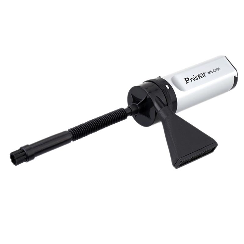 Sano hyvästi pölylle! Tämä Pro'sKit MS-C001 -pölynpuhallin on täydellinen vaikeasti tavoitettavien tilojen, kuten urien, rakojen, näppäimistöjen jne. puhdistamiseksi.