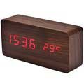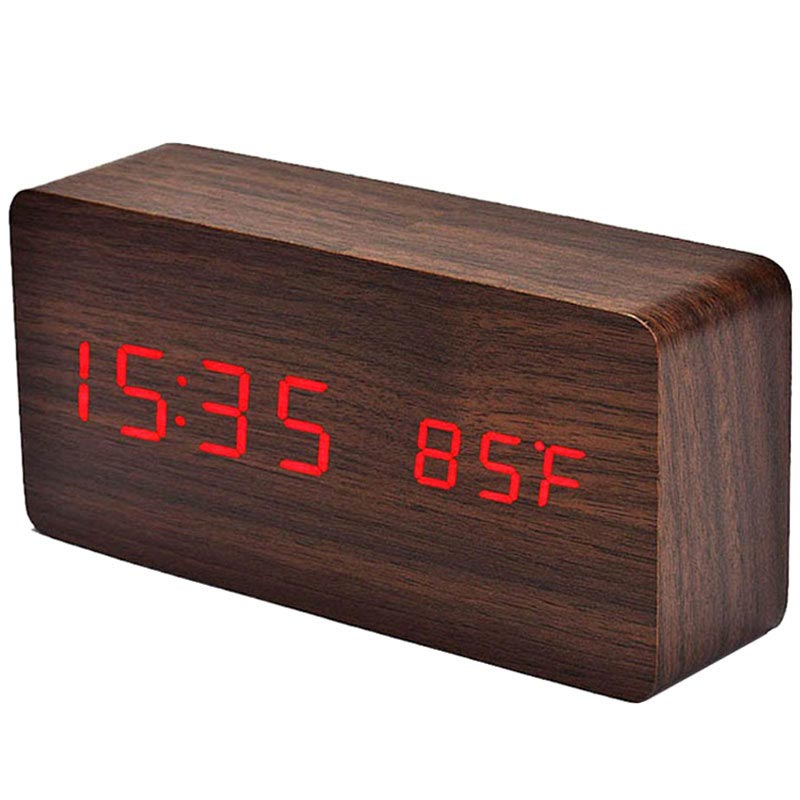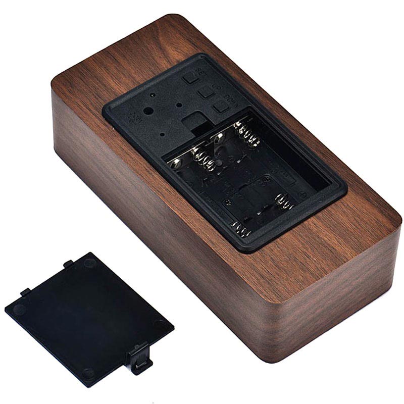 LED Herätyskello Puinen Muotoilu. Se osoittaa ajan 12 tunnin ja 24 tunnin muodossa sekä lämpötilan Celsius ja Fahrenheit asteikoilla. Kaksoisvirtalähde tarkoitta, että voit ladata sen USB-kaapelilla tai AAA paristoilla.