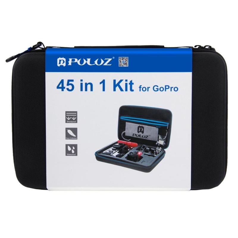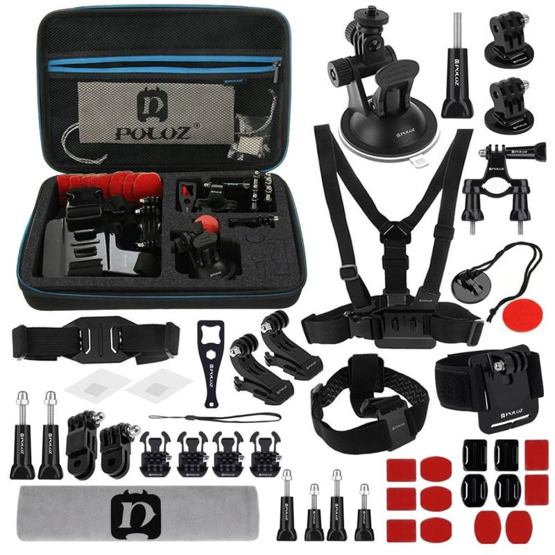 PULUZ PKT10 45-in-1-toimintakameran lisävarustesarja - suuri säilytyslaukku, rinta- ja pääkiinnikkeet, kelluva kahvasarja GoPro-kameralle