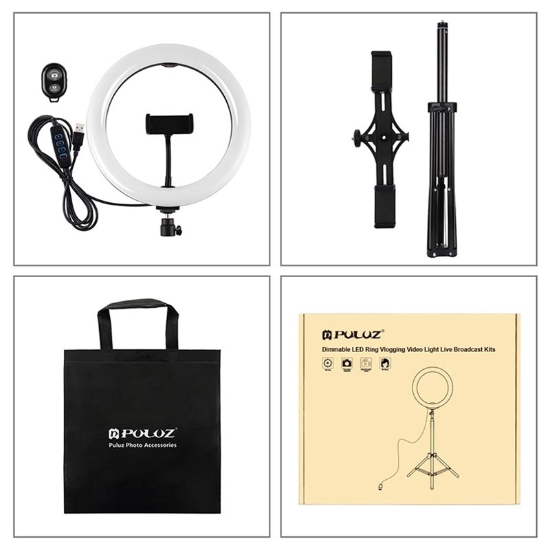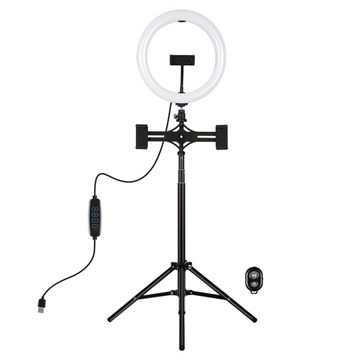 PULUZ PKT3066B 10.2" LED Selfie Ring Light Matkapuhelin Clamp Tripod jalusta YouTube Blogger Videokuvaus