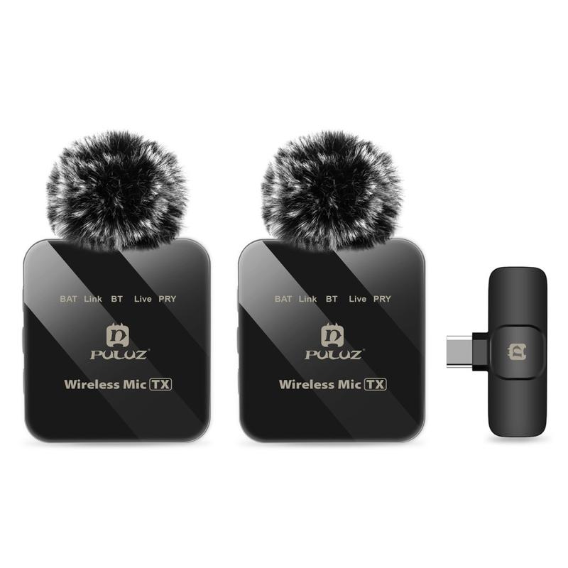 Puluz PU648B -kaksoislangaton lavalier-mikrofoni, jossa on Type-C-vastaanotin, ENC-kohinanvaimennus ja 48 kHz:n äänenlaatu