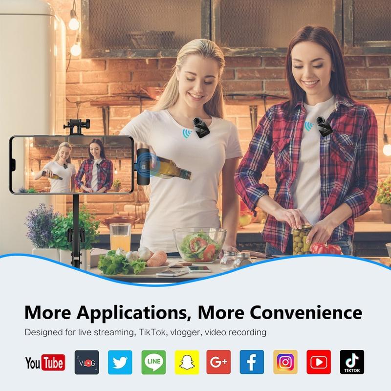 Kaksimikrofoninen rakenne tekee järjestelmästä erityisen hyödyllisen, kun kahta puhujaa on tallennettava samanaikaisesti ilman, että heidän tarvitsee jakaa yhtä mikrofonia. Type-C-vastaanotin tukee kätevää käyttöä yhteensopivien älypuhelinten ja laitteiden kanssa, kun taas matalan viiveen yhteys auttaa pitämään äänen tallennuksen sujuvana ja luonnollisena. Sisäänrakennetut ominaisuudet, kuten Bluetooth-yhteensopiva tila, älykäs mykistystuki ja kaiunparannus, lisäävät luovaa joustavuutta käyttäjille, jotka haluavat enemmän kuin pelkkää perusäänitallennusta.