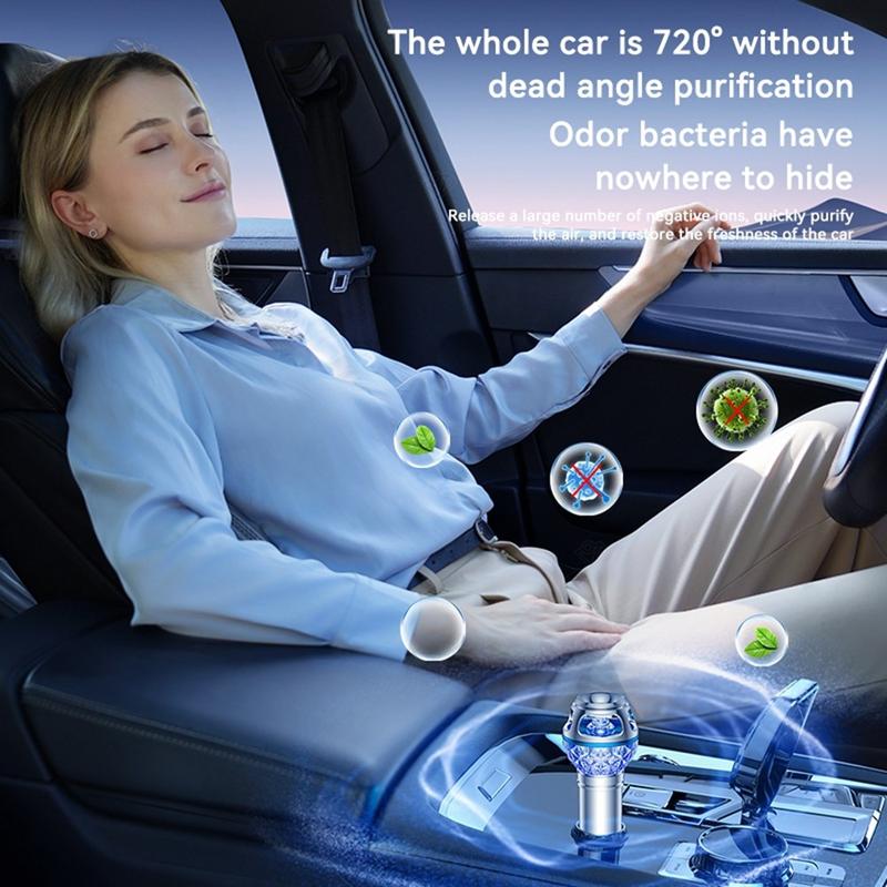 Toisin kuin tavalliset auton ilmanraikastimet, jotka vain peittävät ei-toivotut hajut, tämä puhdistin on suunniteltu torjumaan hajumolekyylejä suoraan. Sen 720 asteen puhdistusalue tukee tasaisempaa ilman käsittelyä koko matkustamossa, auttaen raikastamaan ilmaa kuljettajan, matkustajien, istuinten ja jalkatilan ympärillä. Korkeapitoisten negatiivisten ionien ja matalan tason otsonin yhdistelmä tukee miellyttävämpää auton sisäilmaa päivittäisillä työmatkoilla, pitkillä ajomatkoilla tai ruuhkassa vietetyllä ajalla.