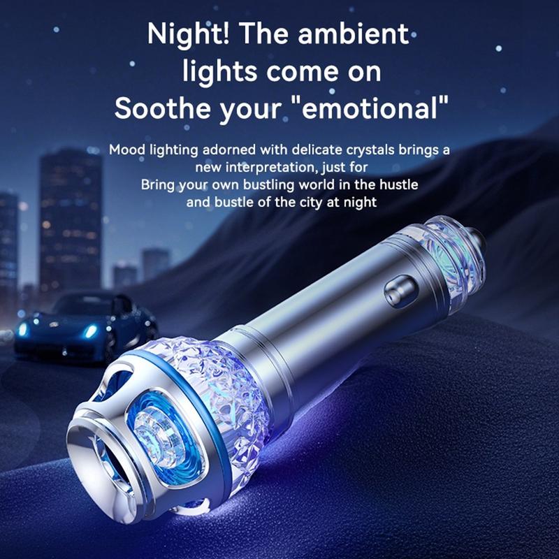 Kompakti muoto sopii siististi ajoneuvosi sisustukseen vievättä paljon tilaa, ja alhainen virrankulutus (enintään 0,8 W) tekee siitä tehokkaan lisävarusteen säännölliseen käyttöön. Pehmeä sininen yövalo lisää myös hienovaraisen visuaalisen yksityiskohdan sisustukseen, mikä tekee puhdistimesta sekä toimivan että visuaalisesti houkuttelevan pimeän tultua.