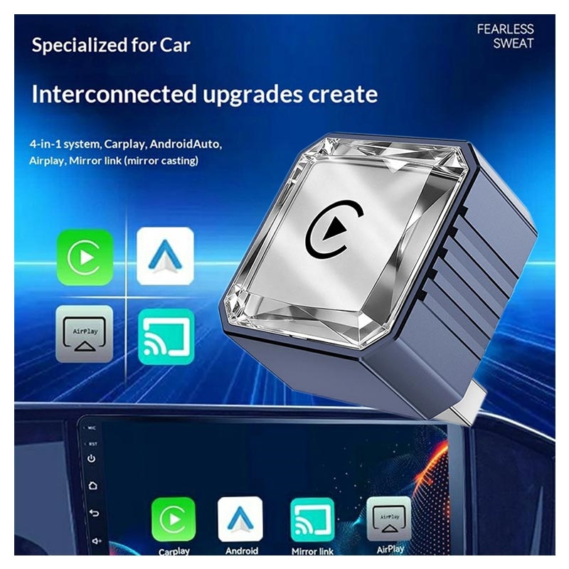 Q1BVS-timanttimuotoinen 4-in-1 langaton CarPlay-sovitin / CarPlay-, Android Auto-, AirPlay- ja MirrorLink-yhteensopiva älylaite
