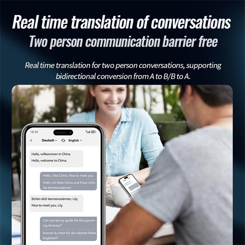 - Tekoälytoiminnot: Yhdistä Bluetooth-yhteys AIREC-sovellukseen reaaliaikaista tekoälyn transkriptiota ja käännöstä varten jopa 189 kielellä.