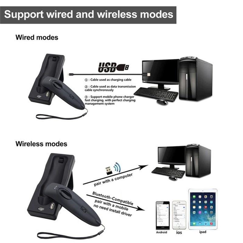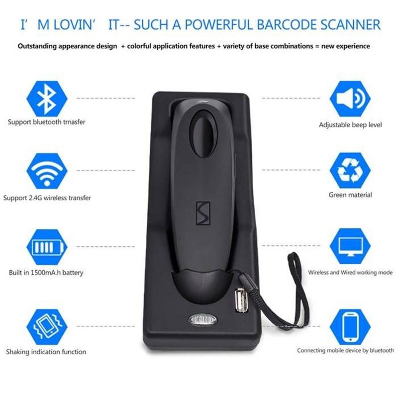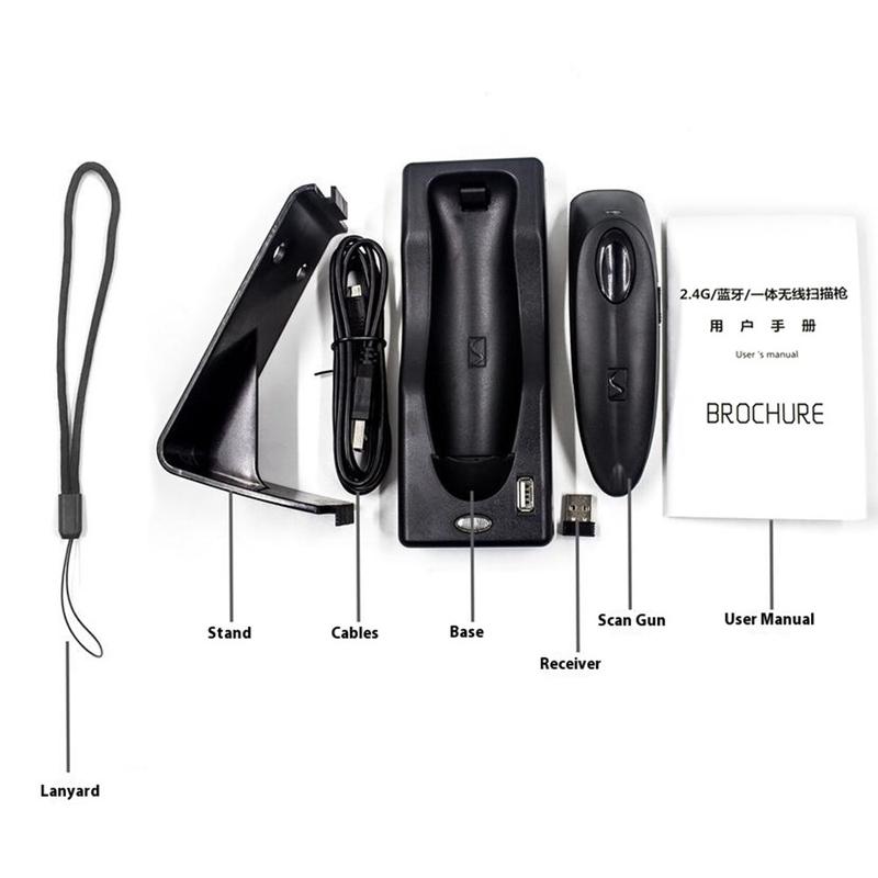 R40 Langaton 2D-viivakoodiskanneri - Bluetooth 4.0 & 2.4GHz QR-koodinlukija latausasemalla, 1500 skannausta/s