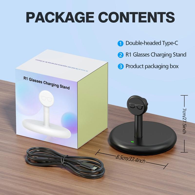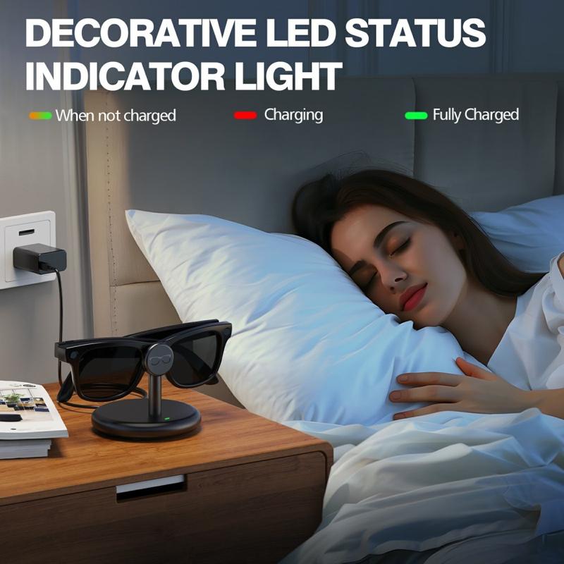 Tämä AR-älylasien latausteline tarjoaa turvallisen, tehokkaan ja nopean latauksen kannettaville laitteillesi. Se on suunniteltu Ray-Ban Wayfarer-, Skyler-, Headliner- ja Oakley HSTN -malleille, ja se pitää lasit tukevasti paikoillaan samalla kun se tarjoaa nopean, älykkään virransiirron USB-C:n kautta.