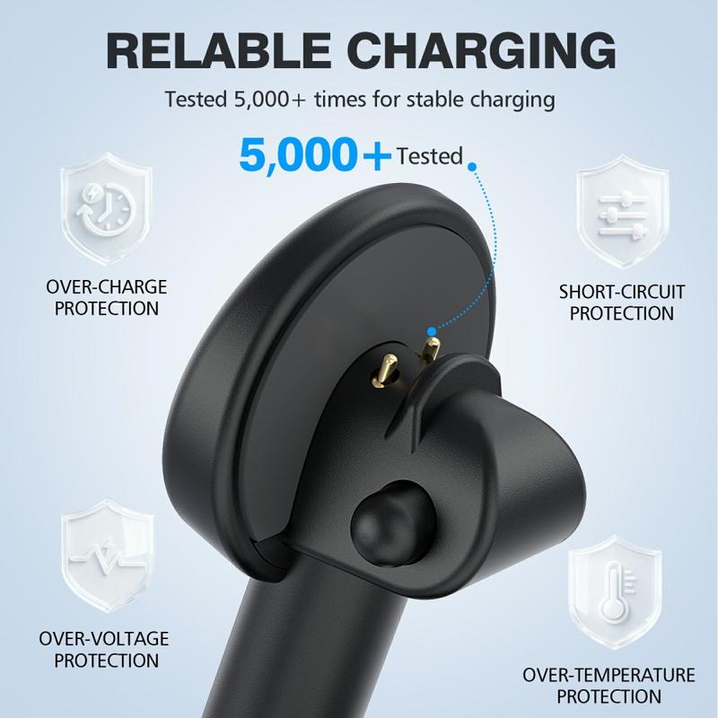 Sisäänrakennetun älykkään suojan ansiosta jalusta takaa turvallisen latauksen jopa pitkien tuntien ajan tai yön yli. Se suojaa ylikuumenemiselta, ylilataukselta ja jännitteen vaihteluilta, joten lasisi ovat aina käyttövalmiit.
