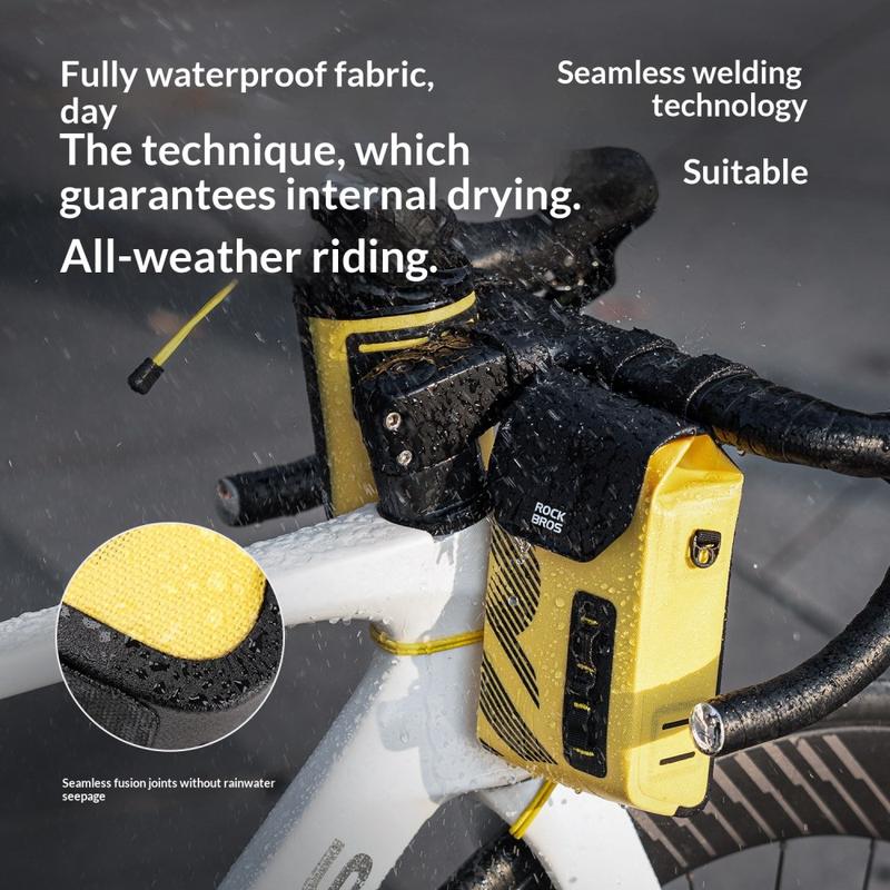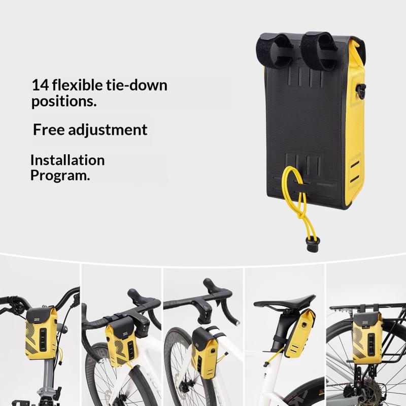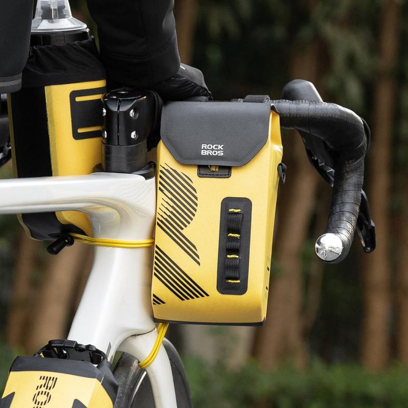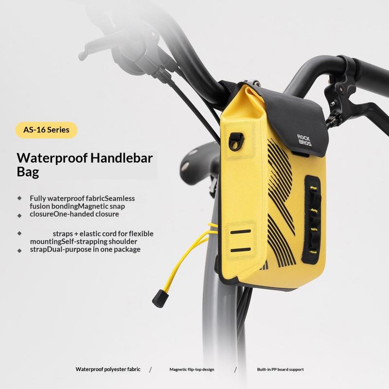 Rockbros AS-160 vedenpitävä ohjaustangon laukku 1.3l - magneettinen kansi, 14 kiinnityskohtaa, olkahihna 1,5 m