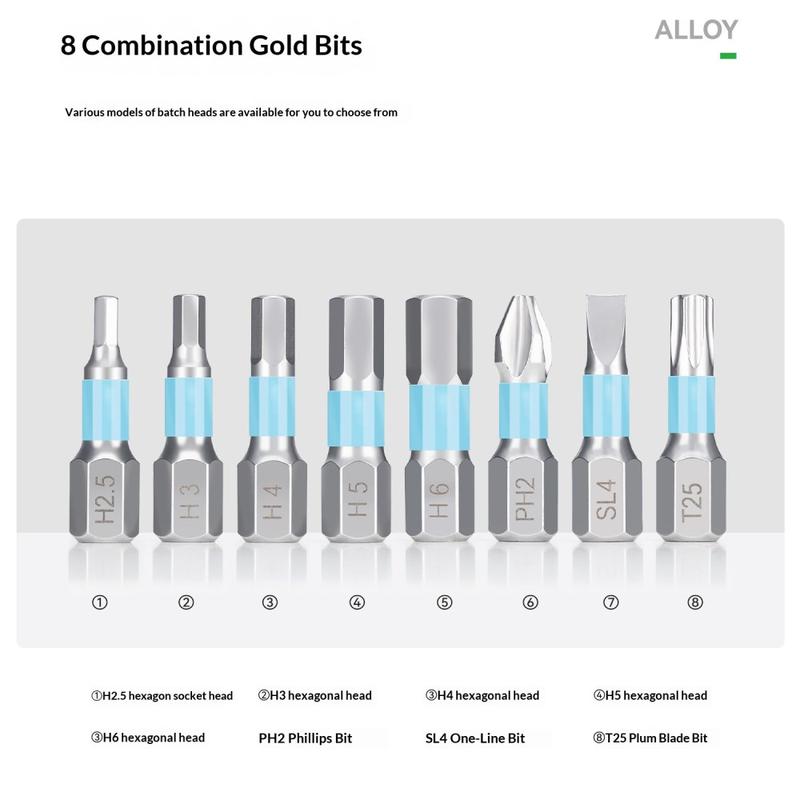 Sarja sisältää 8 yleisesti käytettyä metallibittiä, joilla hoidat useimmat polkupyörän korjaustöistä: