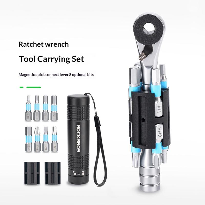 Rockbros TG-8601 kannettava räikkäavainsarja / magneettinen pyöränkorjaussarja, jossa 8 terää
