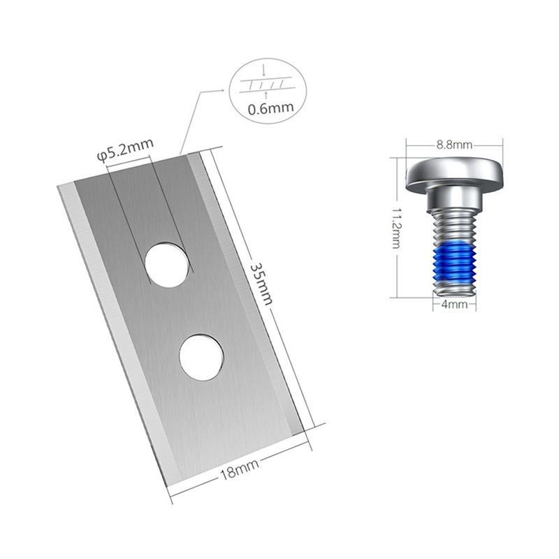 Tarkkojen 35 x 18 x 0,75 mm:n mittojen ja kaksireikäisen kiinnitysrakenteen ansiosta terät istuvat tukevasti ja toimivat vakaasti yhteensopivissa robottileikkureissa. Sarjaan kuuluu myös sopivat ruuvit, joissa on sinistä kierrelukitetta, joka estää ruuvien löystymisen käytön aikana ja tekee huollosta helpompaa ja luotettavampaa.