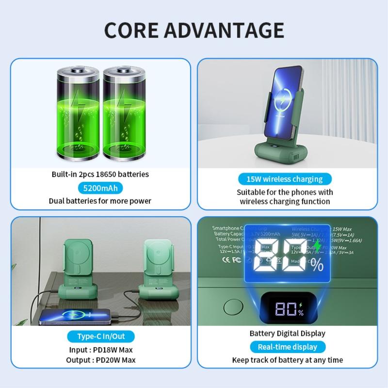 - 15W:n langaton lataus: Tukee 15W:n langatonta latausta, jotta puhelimesi saa virtaa kuvaamisen aikana. Yhteensopiva kaikkien langatonta latausta tukevien älypuhelinten kanssa.