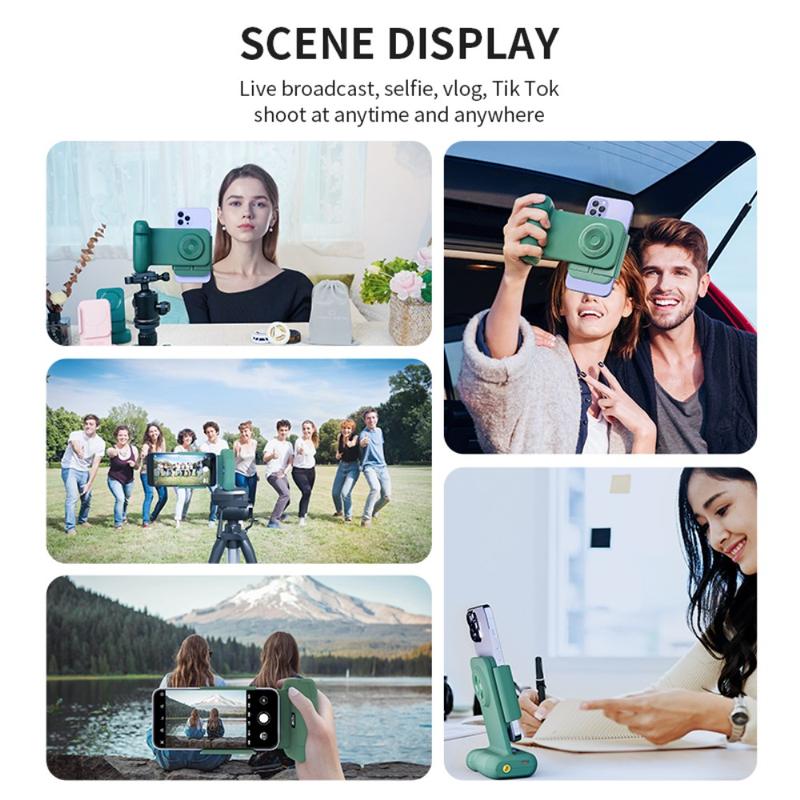 RX01-B Anti Shake Bluetooth Selfie Assistant -älypuhelinkahva on täydellinen työkalu ammattilaatuisten valokuvien ja videoiden ottamiseen älypuhelimella. Tämä laite, jossa on ergonominen ote mukavuutta varten, takaa turvallisen otteen pitkien kuvaussessioiden aikana. 90 astetta kääntyvä kiinnike tarjoaa monipuolisuutta eri kuvakulmia ja näkökulmia varten. Tässä otteessa on myös sisäänrakennettu 15W:n langaton lataustoiminto, joka pitää laitteesi virran päällä kuvaamisen aikana. Se on varustettu irrotettavalla langattomalla kaukolaukaisimella, jolla voit ohjata kameraa ilman käsiä, ja se on täydellinen lisävaruste ryhmäkuvia, vlogeja tai muuta luovaa sisältöä varten. Lisävarusteena on kiinnitysmahdollisuuksia jalustoille, täytevaloille ja mikrofoneille, joten tämä selfie-avustaja muuttaa puhelimesi ammattilaistason peilikameraksi.