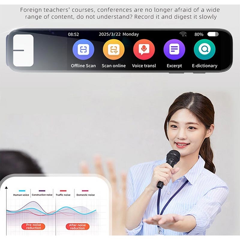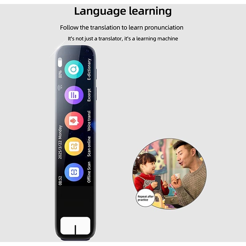 Murra kielimuurit S08B Smart Voice Translatorilla, joka on kompakti ja tehokas laite, joka on suunniteltu matkailijoille, opiskelijoille ja ammattilaisille. Tässä 3,69 tuuman kapasitiivisella kosketusnäytöllä varustetussa kääntäjässä on sujuva ja selkeä vuorovaikutus. Se tarjoaa 134 tuettua kieltä, reaaliaikaista äänikääntämistä, valokuvakääntämistä ja skannauskääntämistä, jotka kattavat lähes kaikki tilanteet. Neliydinsuorittimella, 1 Gt RAM-muistilla ja 8 Gt:n tallennustilalla (laajennettavissa 32 Gt:iin) varustettu kääntäjä tarjoaa luotettavan suorituskyvyn sekä kääntämiseen että oppimiseen. Kevyt ja kannettava, se mahtuu helposti taskuun, joten se on paras väline viestintään kaikkialla maailmassa.