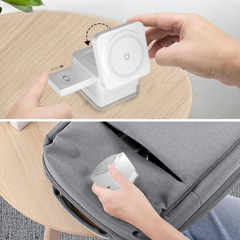 Pidä päivittäinen latausjärjestelmäsi siistinä ja kätevänä S6 3-in-1 -magneettisen langattoman latausaseman avulla. Tämä taitettava telakka on suunniteltu lataamaan iPhone, Apple Watch ja AirPods yhdessä kompaktissa paikassa, mikä tekee siitä ihanteellisen kotiin, toimistoon tai matkakäyttöön.