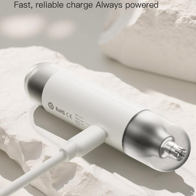 200 mAh:n akulla toimiva hoitotrimmeri latautuu noin 1,5 tunnissa Type-C-liitännän kautta. Sisäänrakennettu moottori, jossa on siruavusteinen ohjaus, on suunniteltu tehokkaaseen ja vakaaseen suorituskykyyn hiljaisella käyntiäänellä, mikä tekee hoitoprosessista mukavamman. Kompakti, helposti ladattava ja helppo huoltaa, tämä trimmeri on hyödyllinen päivittäinen henkilökohtaisen hygienian apuväline.