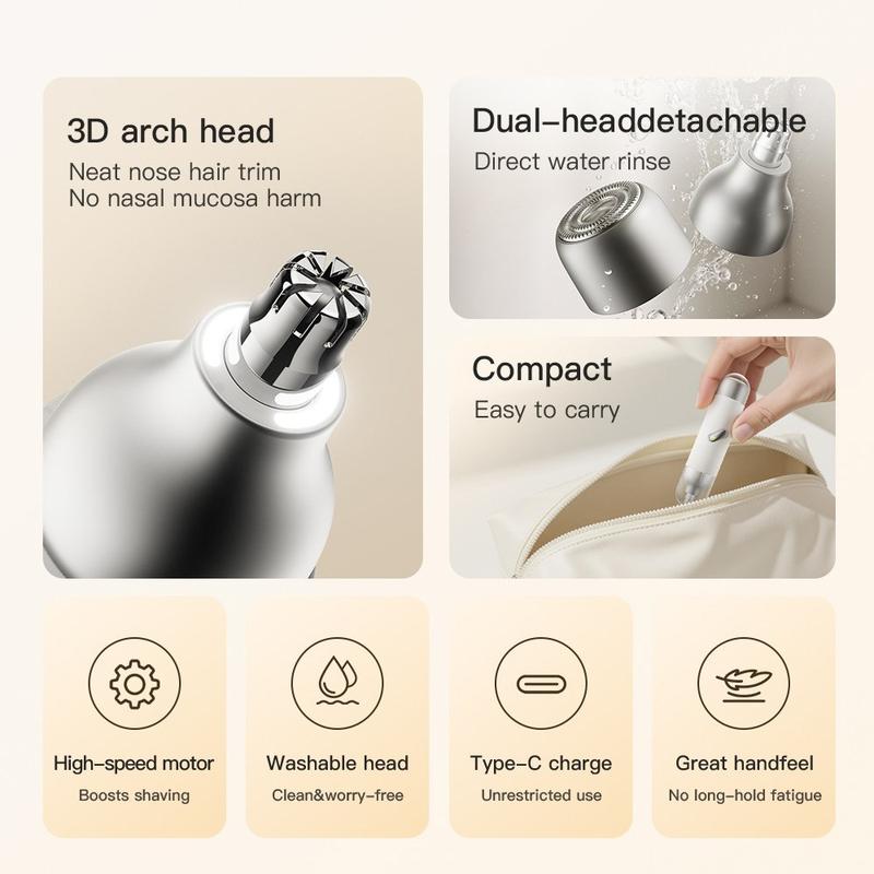 Tee päivittäisestä hoidosta helppoa ja tarkkaa tällä miesten sähköisellä nenä- ja karvatrimmerillä. Tämä kätevä, kämmenenkokoinen hoitoväline yhdistää nenäkarvojen leikkaamisen ja kasvojen viimeistelyn yhteen laitteeseen, mikä tekee siitä käytännöllisen valinnan kotikäyttöön, töihin, kuntosalilaukkuun ja matkalle. Sen pienikokoisuus helpottaa säilyttämistä ja kuljettamista, ja langaton, ladattava rakenne lisää arjen mukavuutta.