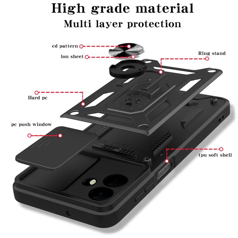 Valmistettu ensiluokkaisista muovista, TPU:sta ja metallimateriaaleista, tämä kotelo Samsung Galaxy A07 4G, Galaxy A07 5G:lle on suunniteltu kestämään ajan ja tarjoamaan suojaa. Useiden toimintojen avulla se suojaa täydellisesti Samsung Galaxy A07 4G, Galaxy A07 5G:täsi ja tekee siitä myös mukavan käyttää ja katsella kiitos takaosan pyörivän renkaan.