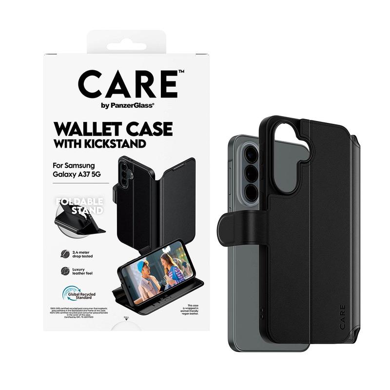 Sijoita CARE by PanzerGlass Feature Wallet Case with Kickstand -lompakkokoteloon, joka tarjoaa Samsung Galaxy A37 -puhelimellesi ylivoimaisen suojan ja tyylin ja varmistaa, että laitteesi pysyy yhtä moitteettomana kuin henkilökohtainen makusi.