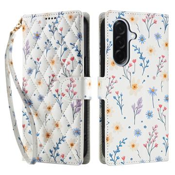 Rombinen kukkakuvioinen lompakkokotelo - Samsung Galaxy A37 - hihnalla ja korttipaikat