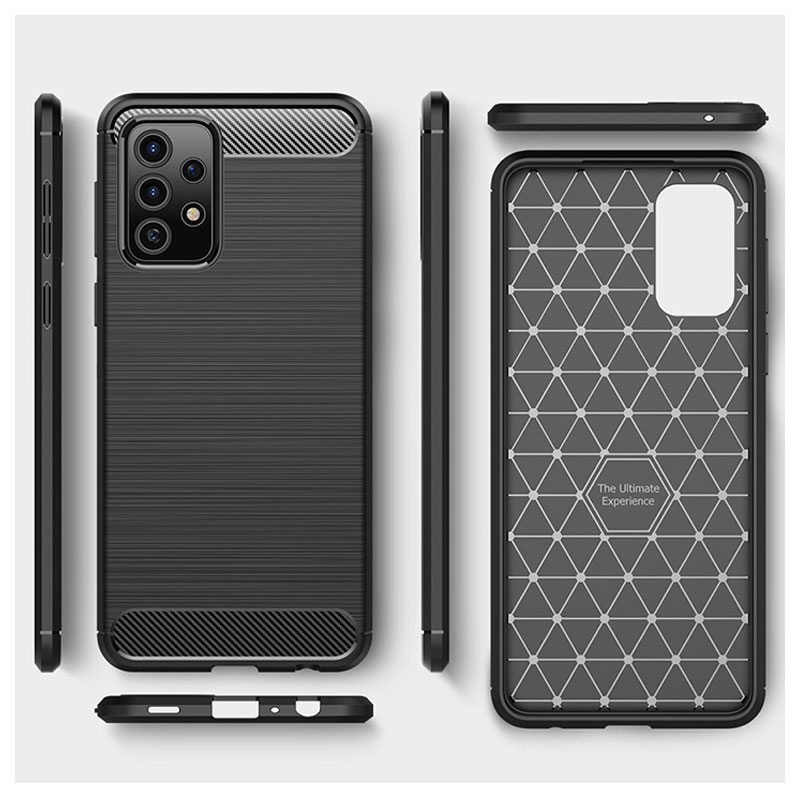 Suojaa Samsung Galaxy A52 5G, Galaxy A52 4G, Galaxy A52s 5G puhelimesi ei-toivotuilta vaurioilta ja pudotuksilta tämän tyylikkään harjatun TPU-suojakuoren kanssa. Tässä joustavassa suojakuoressa on hieno hiilikuituviimeistely, joka lisää Samsung Galaxy A52 5G, Galaxy A52 4G, Galaxy A52s 5G puhelimen tyylikkyyttä ja modernia ulkoasua.