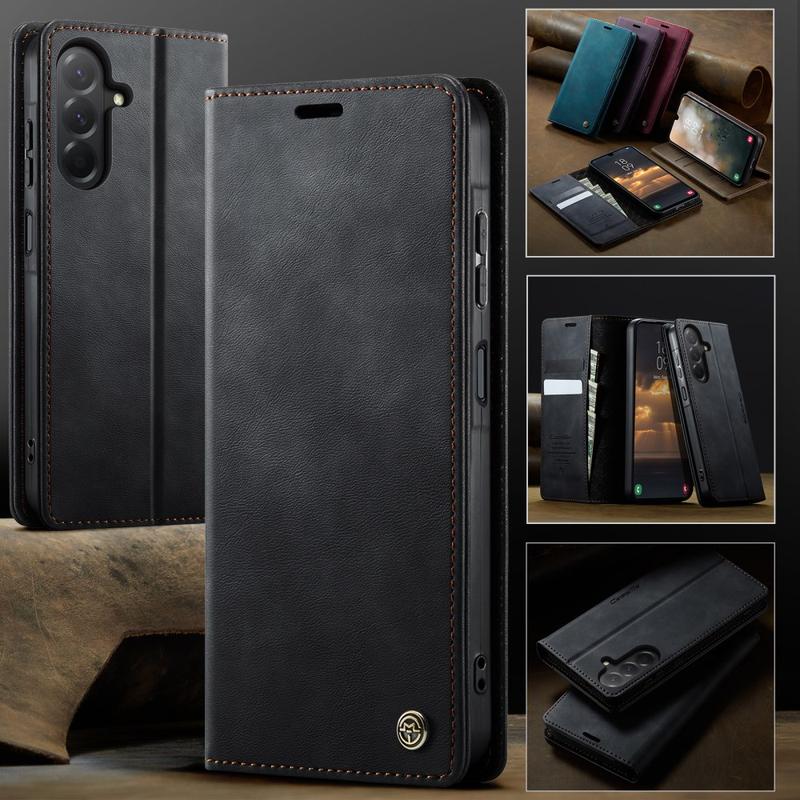 CASEME 033-sarjan lompakkokotelo Samsung Galaxy A57 -puhelimelle on valmistettu vasikkatekstuuripolyuretaanista yhdistettynä TPU:hun, ja se tarjoaa koko kehon suojan naarmuilta, iskuilta ja päivittäiseltä käytöltä säilyttäen samalla ensiluokkaisen, tyylikkään ulkonäön.
