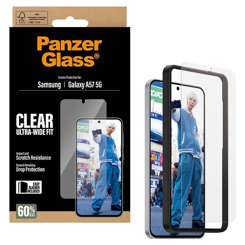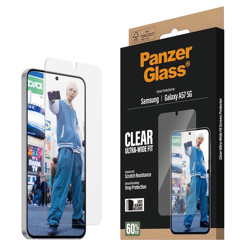 PanzerGlass Ultra-Wide Fit -näytönsuojus EasyAlignerilla on Samsung Galaxy A57 -puhelimesi äärimmäinen suojaus jokapäiväisiä vaurioita vastaan. Älä anna vahingossa tapahtuvien kolhujen tai murskaavien putoamisten pilata laitettasi. Tämän naarmuja ja iskuja kestävän näytönsuojan avulla voit nauttia korkeatasoisesta pudotussuojasta ja pitää puhelimesi koskemattoman näköisenä. Mukana tulevan EasyAligner-työkalun ansiosta myös asennus ei ole koskaan ollut helpompaa.