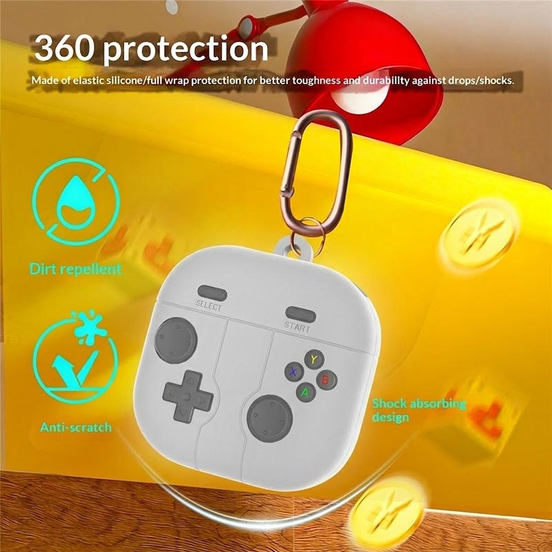 Retro-peliohjain silikonikotelo karabiinilla Samsung Galaxy Buds 4:lle, Galaxy Buds 4 Pro:lle - nestemäistä silikonia oleva kuulokkeiden suojakotelo