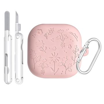 Samsung Galaxy Buds4/Buds4 Pro -kukkapainettu silikonikotelo puhdistuskynillä - vaaleanpunainen